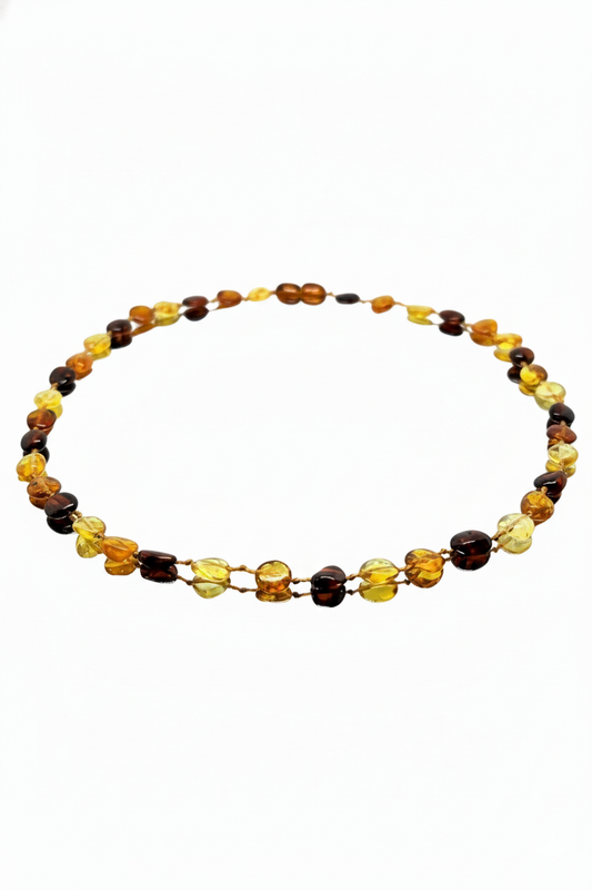 Damla Kehribar Yetişkin Multicolor Yuvarlak Kolye 45cm
