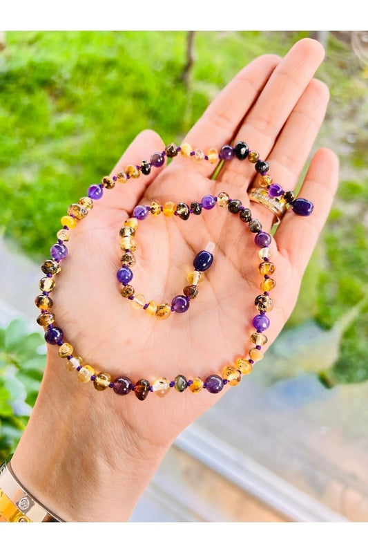 50% İNDİRİMDamla Kehribar Yetişkin Kolye Ametistli Tasarım