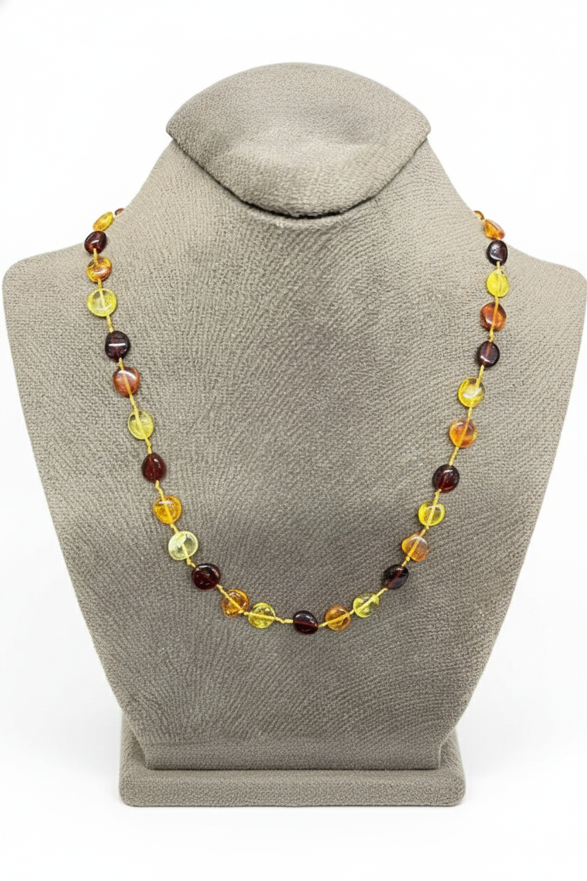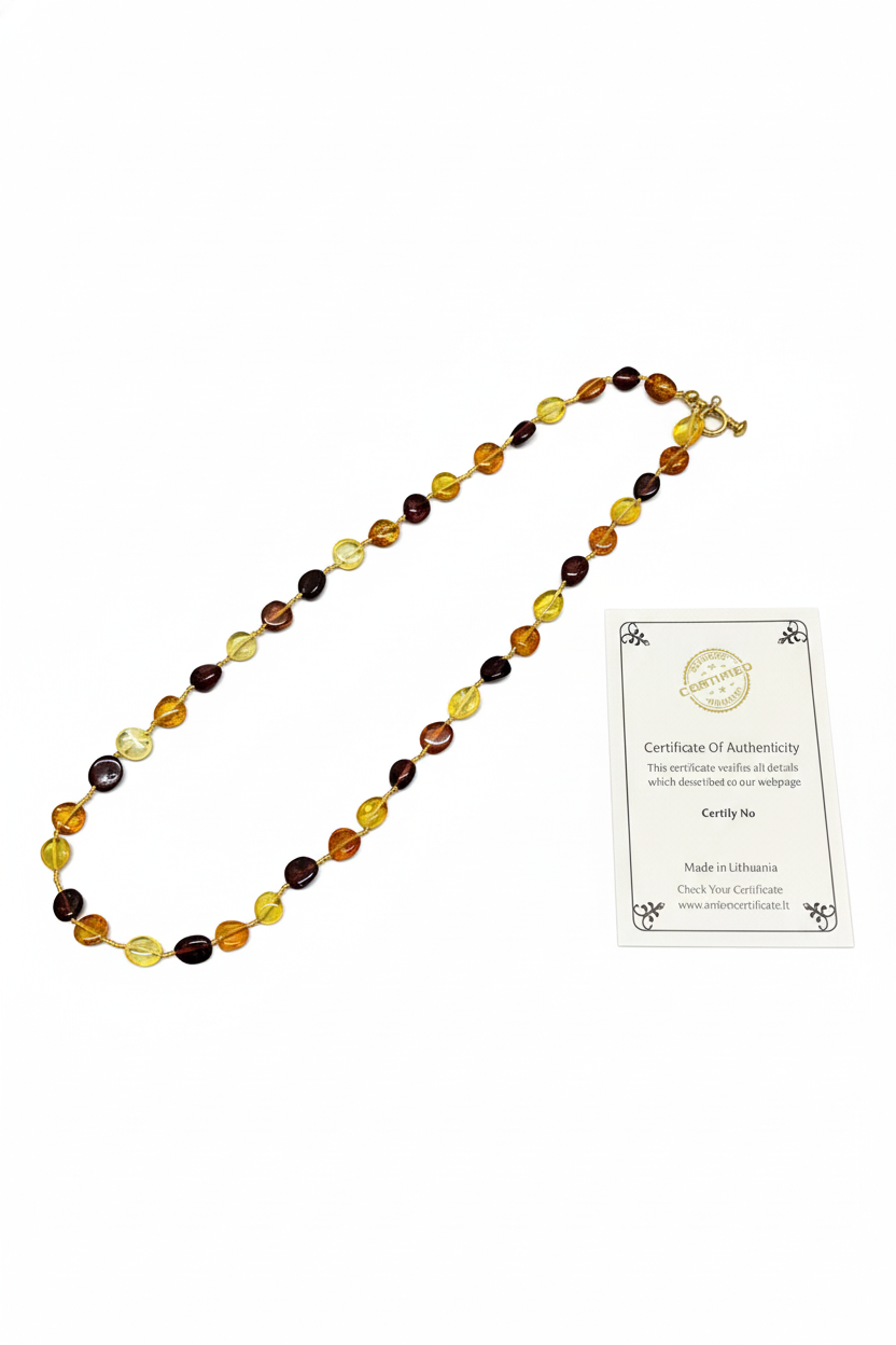 Damla Kehribar Yetişkin Multicolor Yuvarlak Kolye 45cm